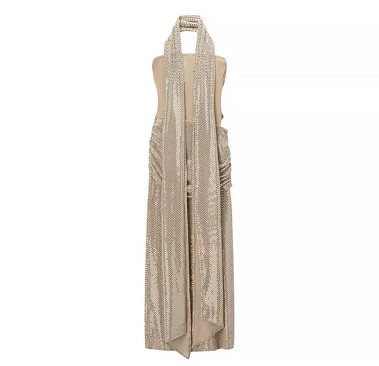 19990# Vestido de lantejoulas com fenda