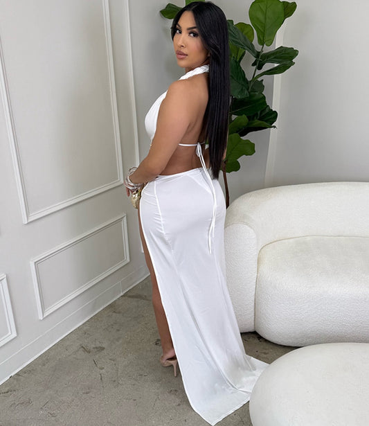 P80026#Vestido sexy sem alças com fenda alta irregular