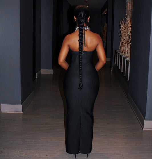 80068 Vestido preto de verão para negócios e festas, costas abertas