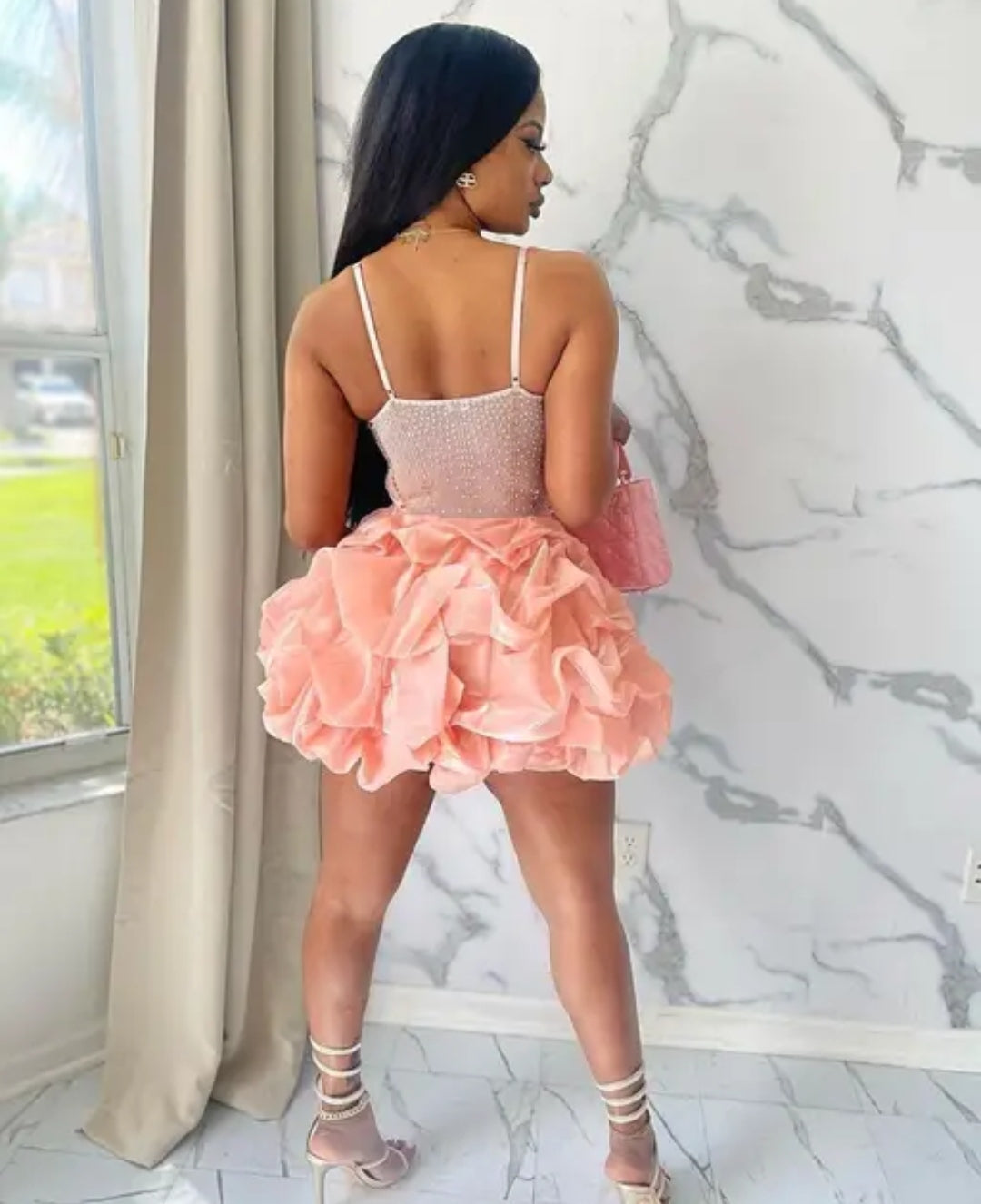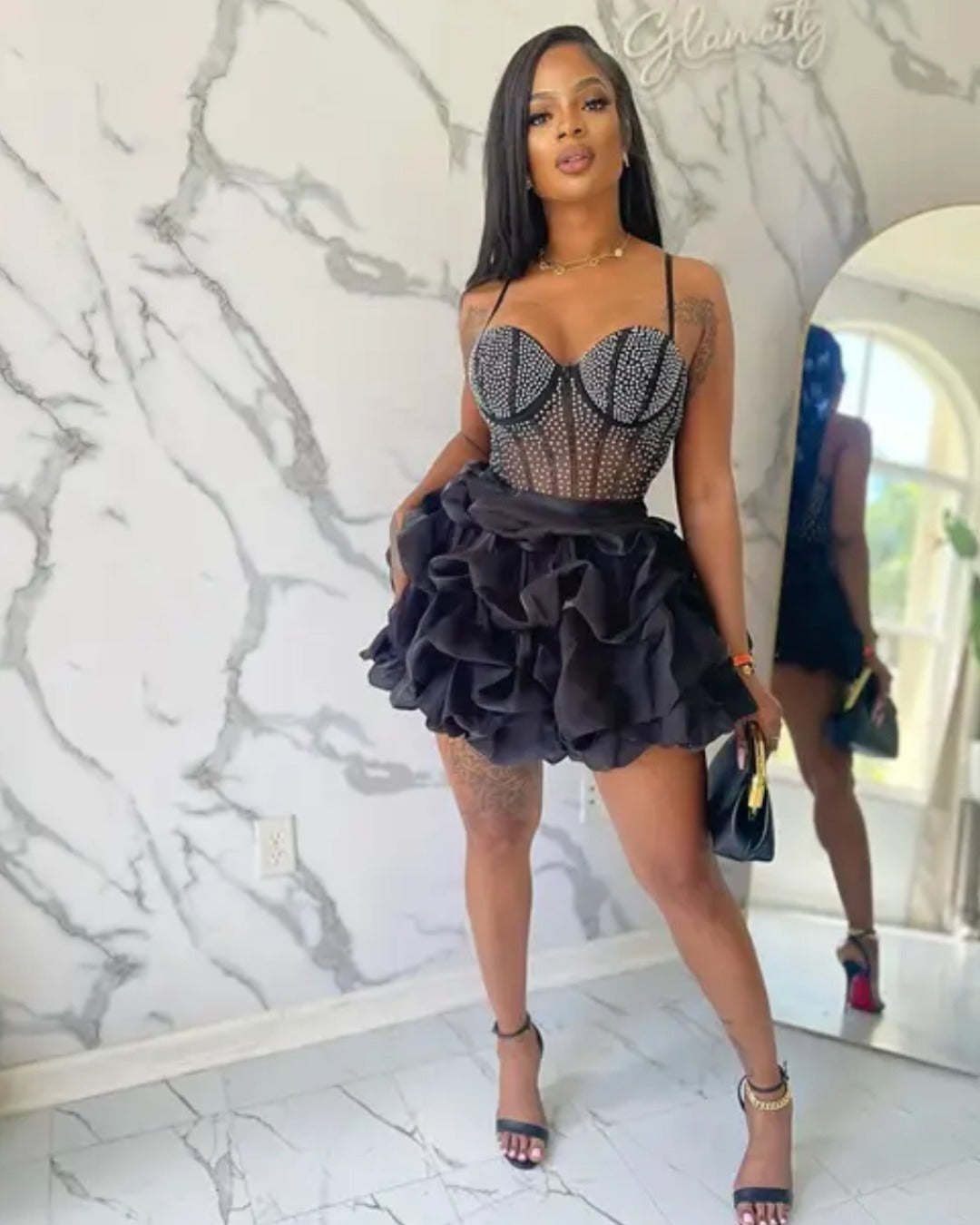 #1615 Rhinestone Mesh Mini Dress with Stones