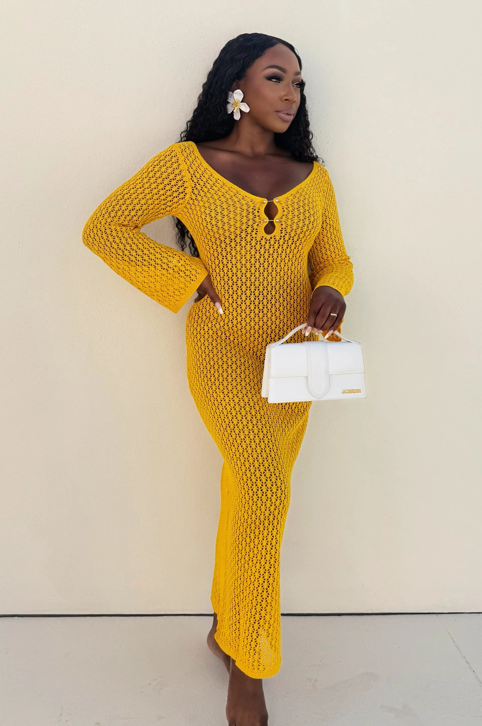 #7044 vestido de praia em malha transparente em v