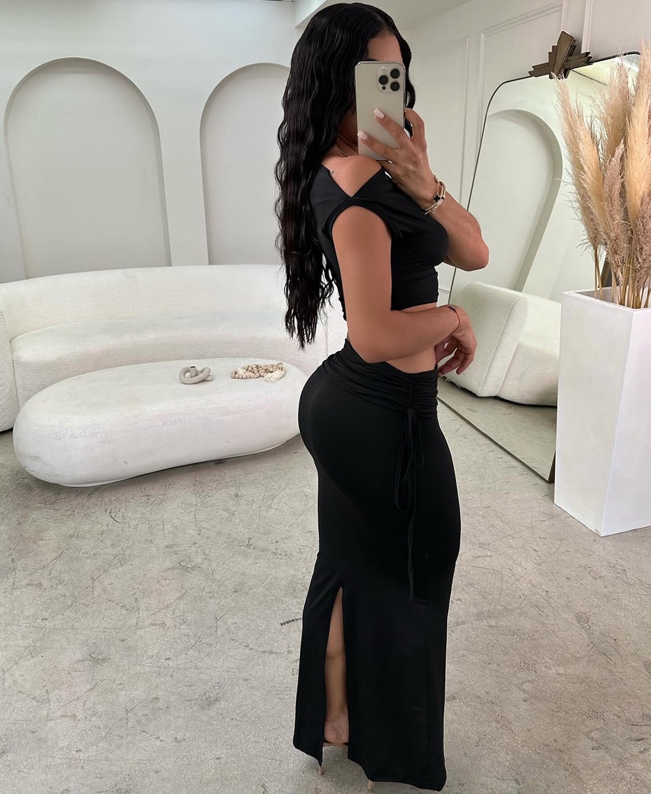 CJ 2004# conjunto saia longa mais mini t-tshirt irregular