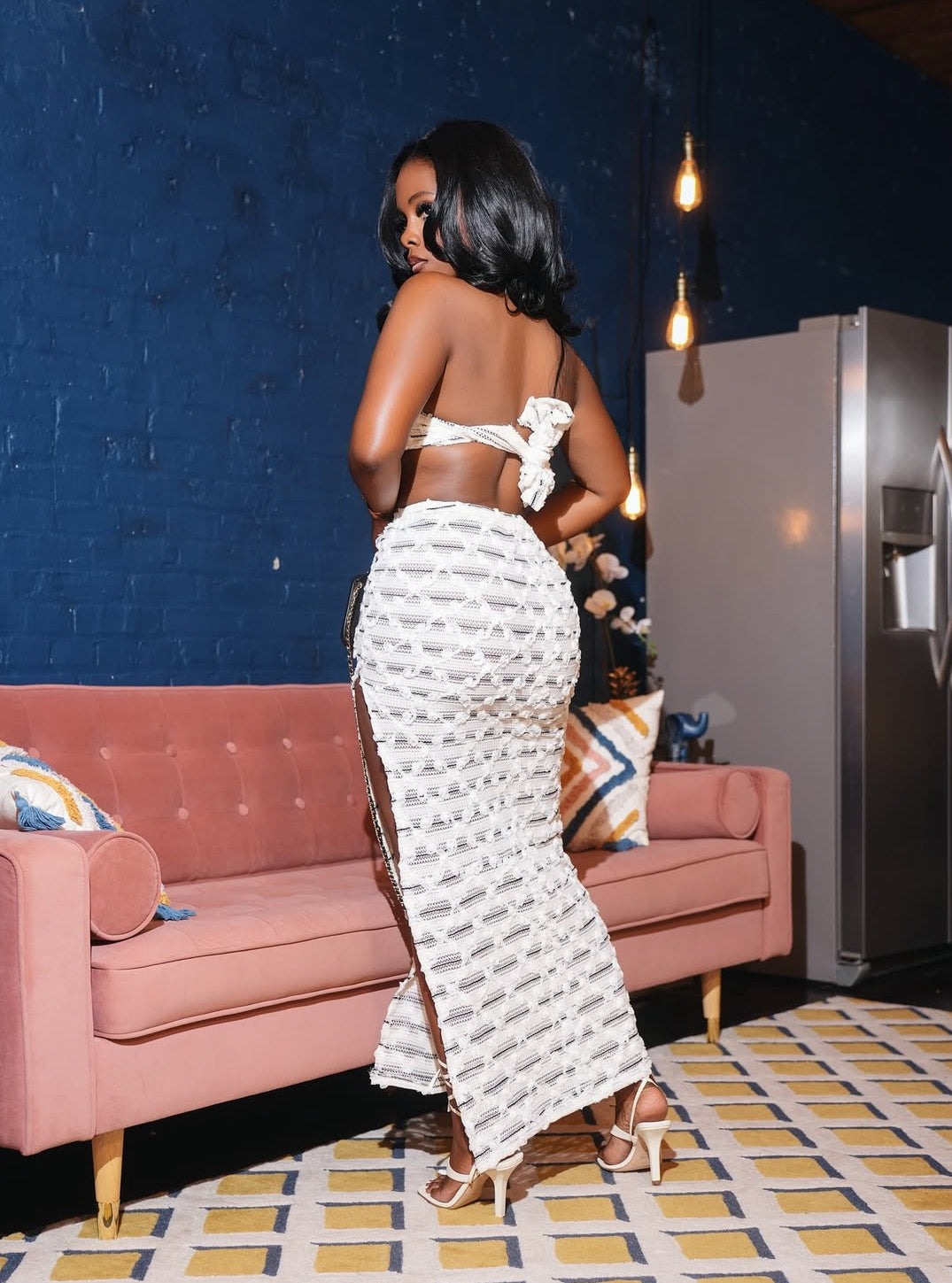 CJ Conjunto sem mangas Top Crop Cintura alta Maxi Saia Festival Verão Praia Resort