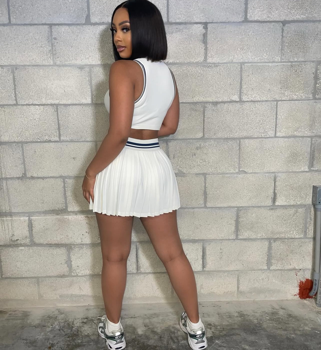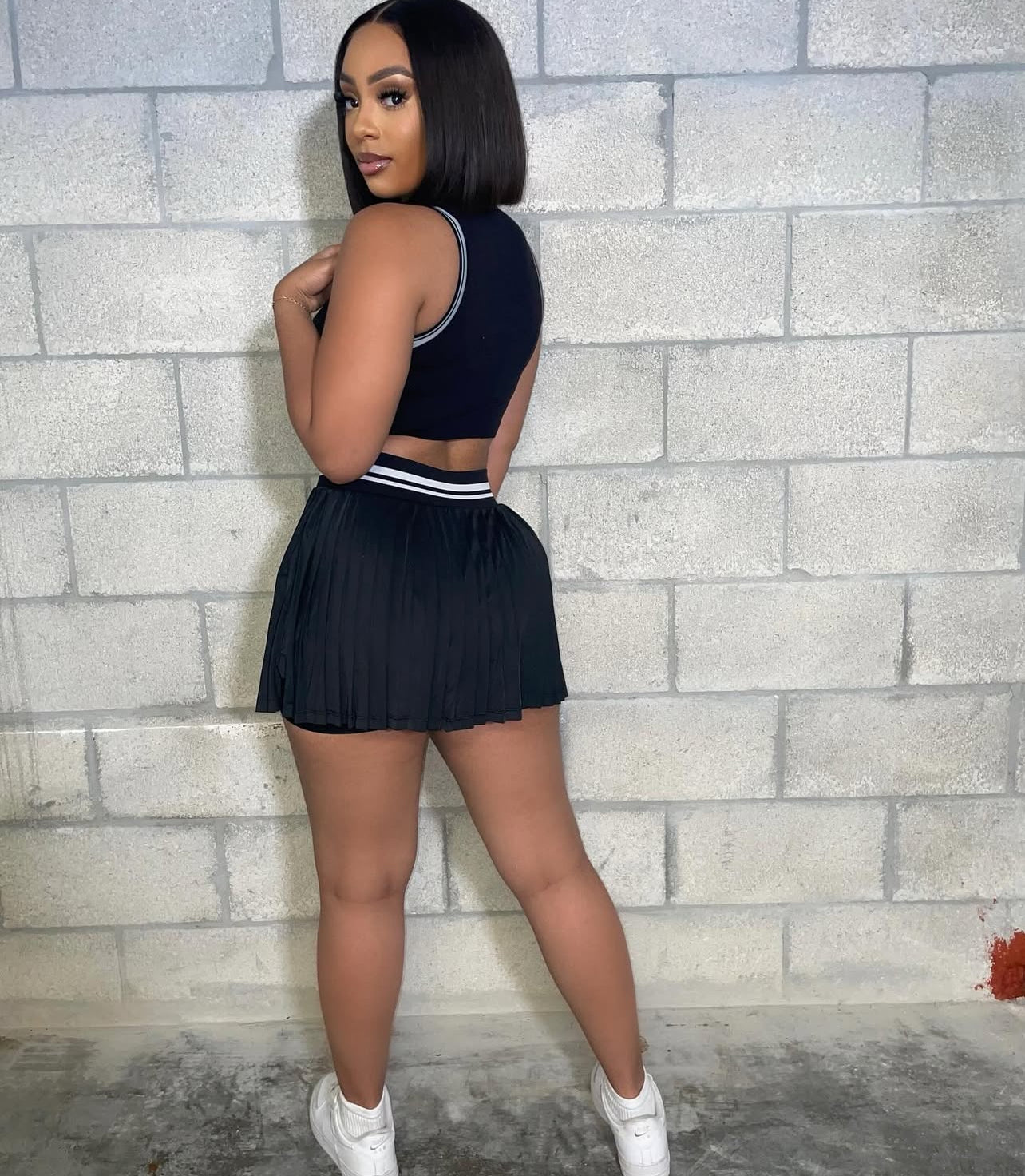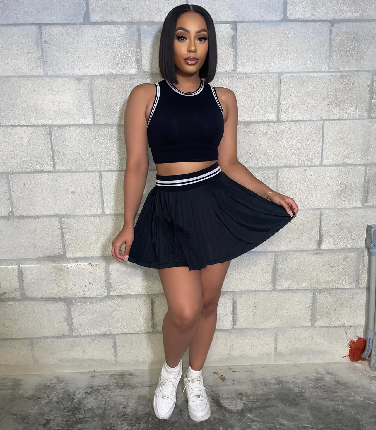 CJ1013# conjunto top sem mangas e saia curta