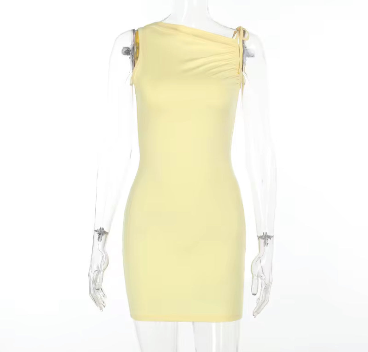 MV1001# mini vestido com alças irregulares justo