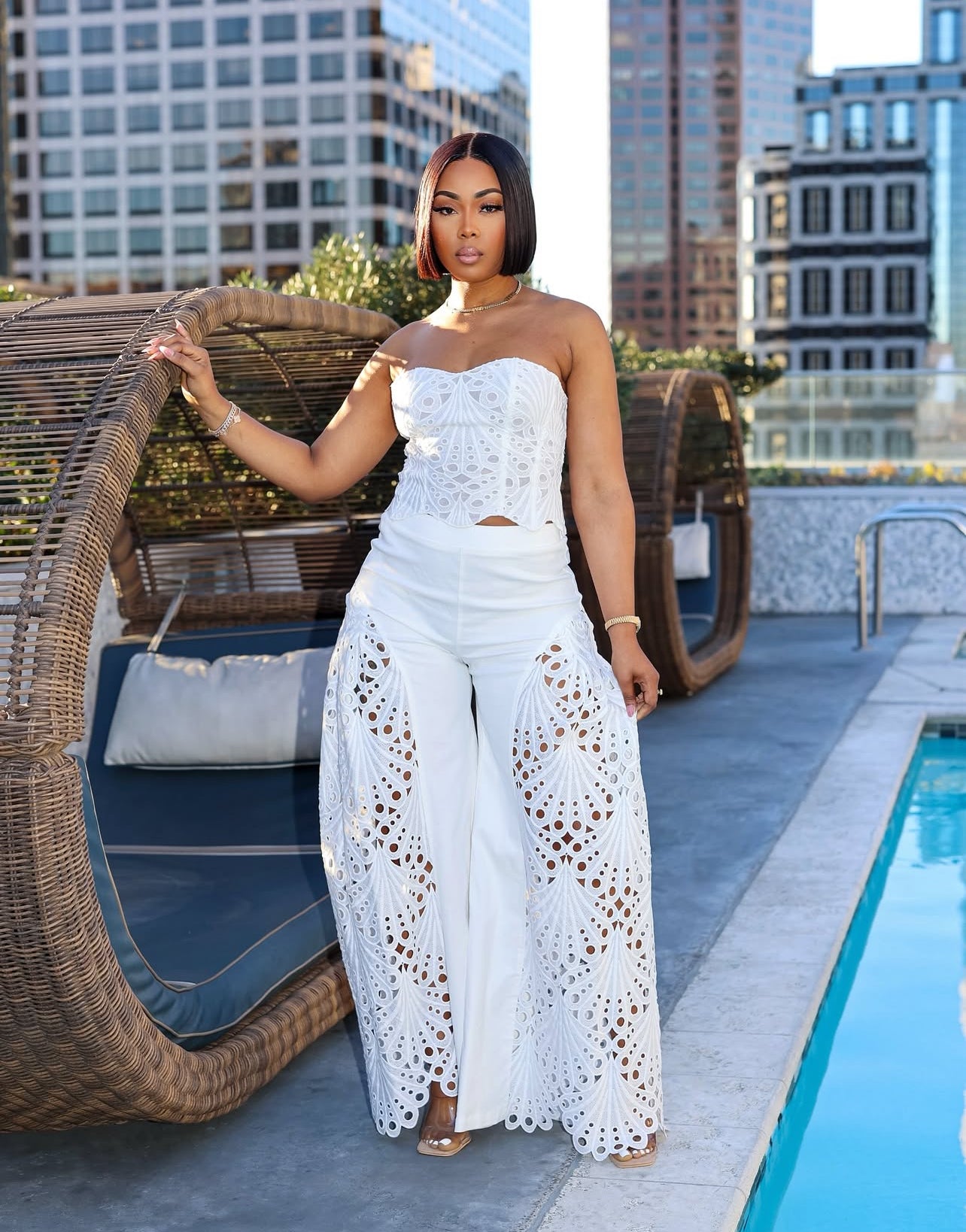870100# Conjunto Sexy sem alças oco calças superiores 2 peça conjunto