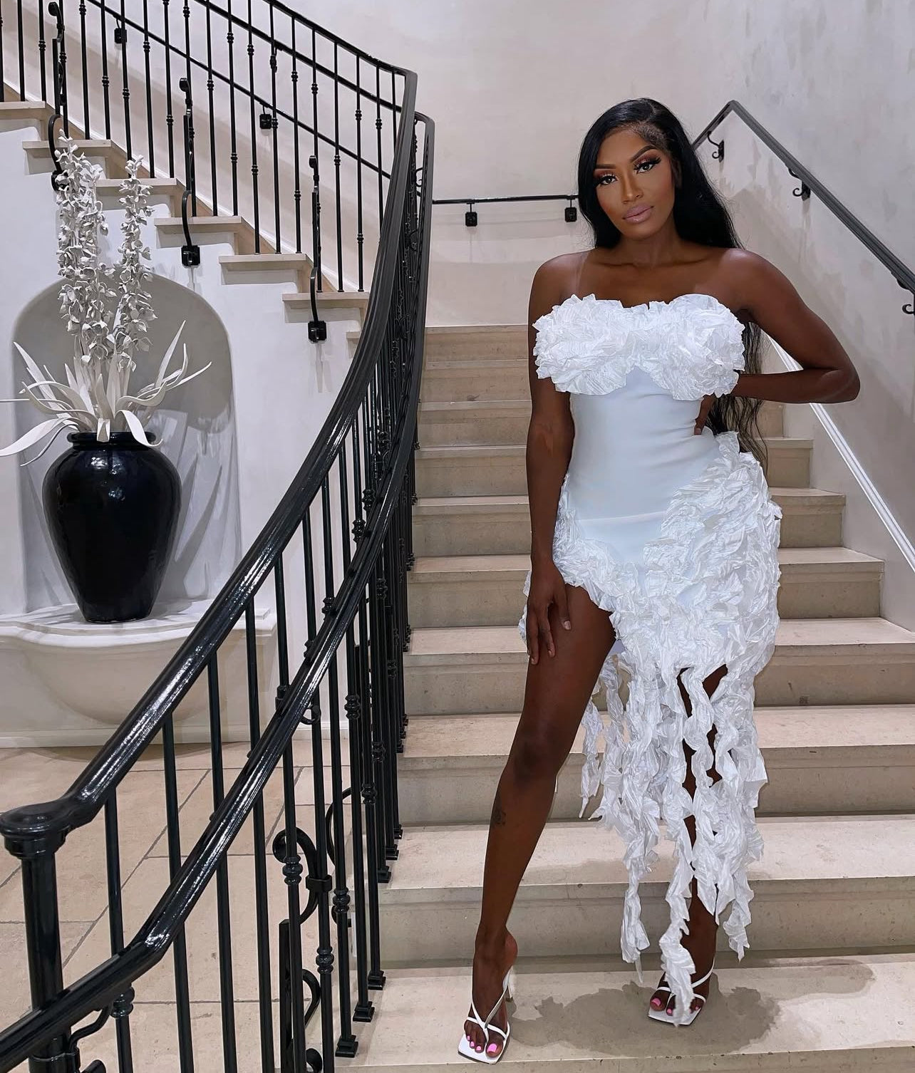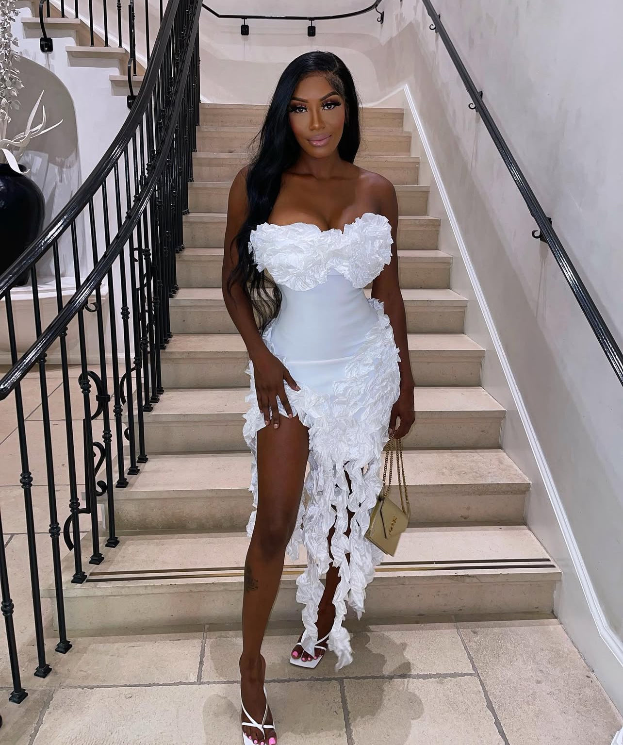 VMD80055 Vestido de baile elegante com estampa floral 3D estilo bandeau para mulheres, festa/baile