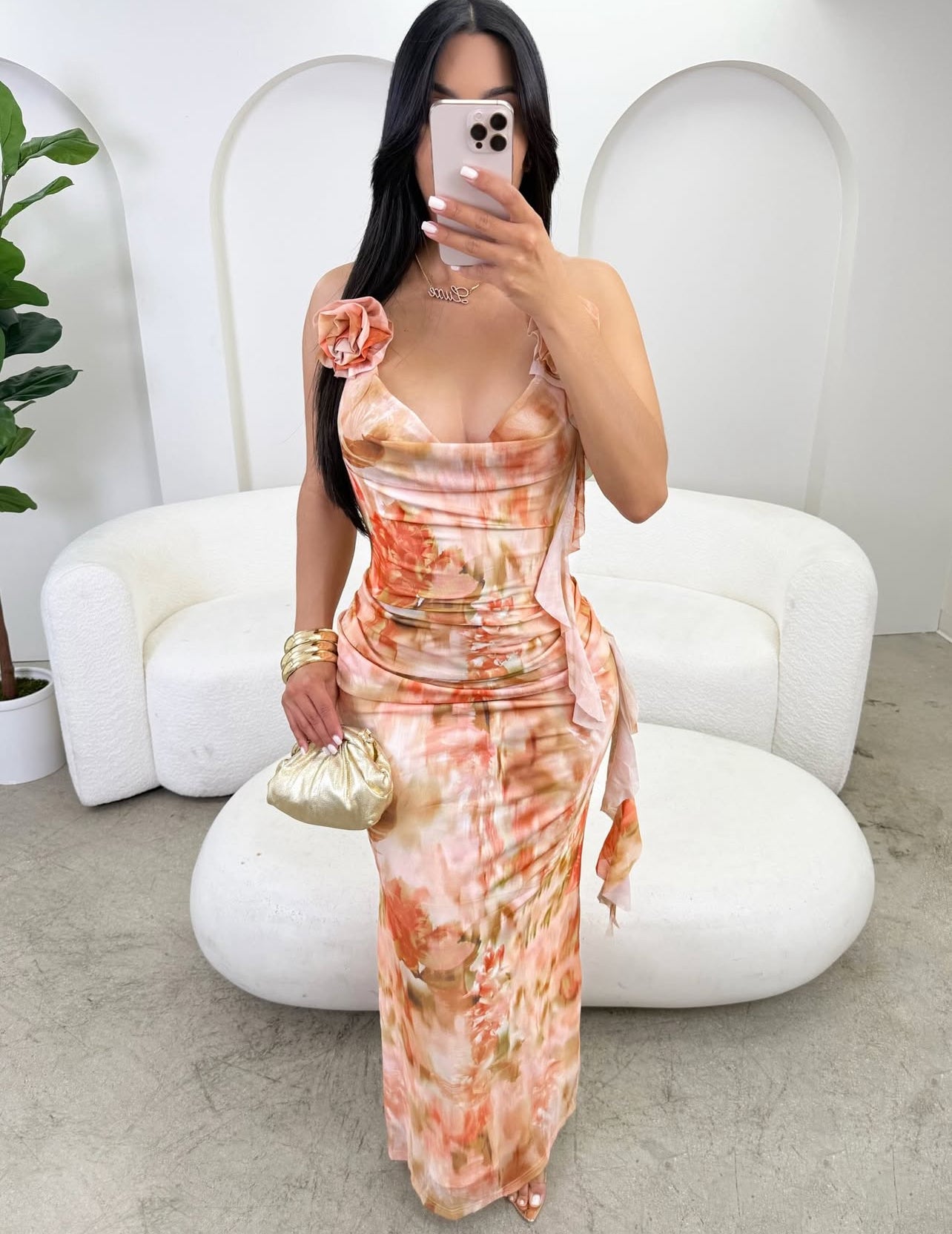 VL2000# Vestido longo floral impress