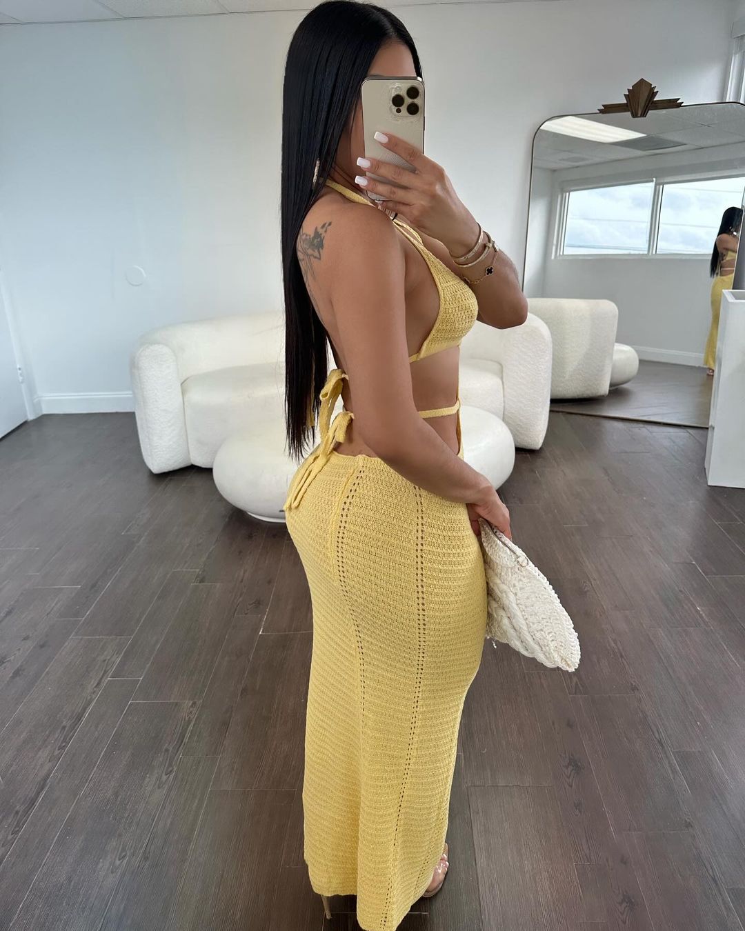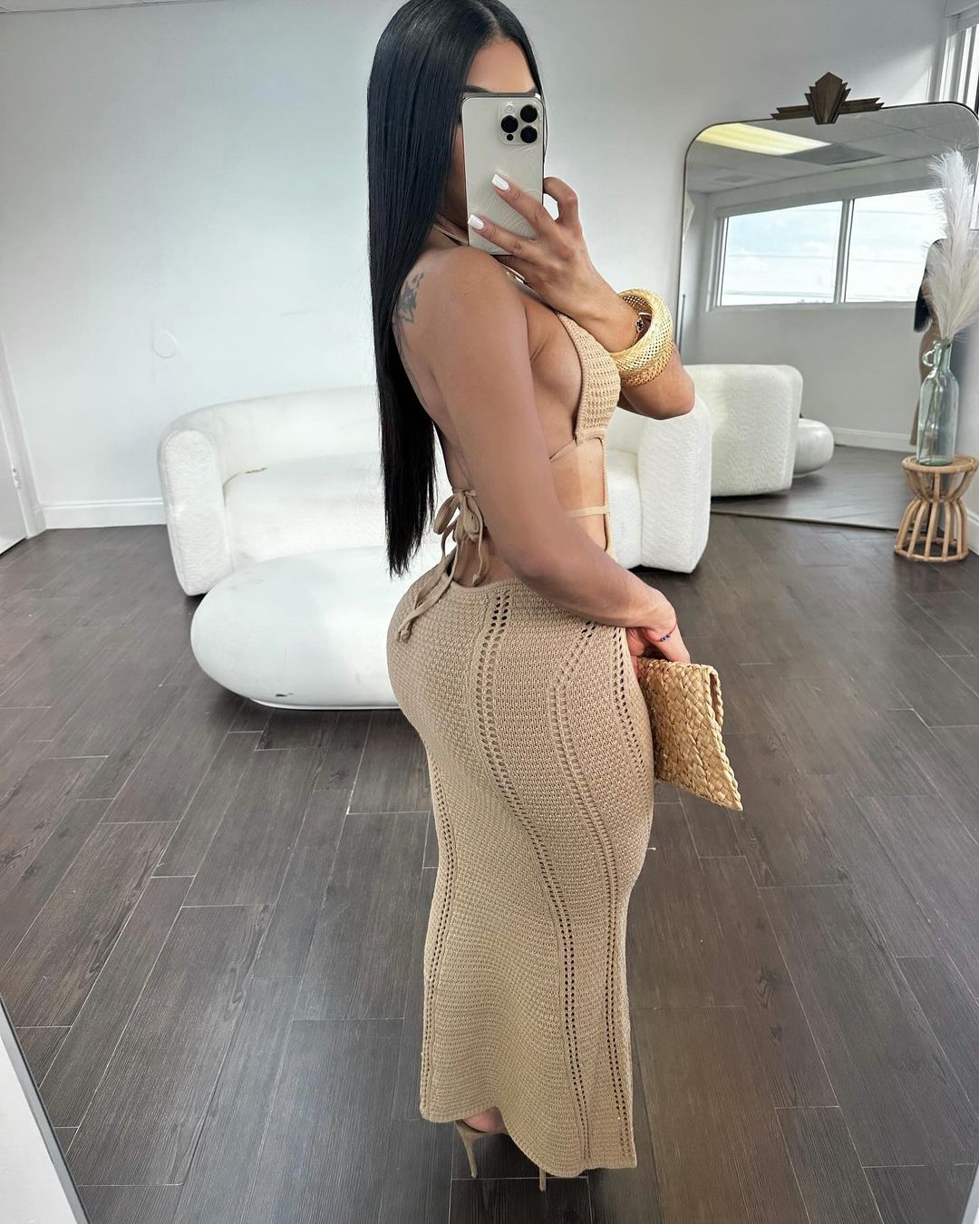 Vestido de malla con escote en V sin tirantes n.° 2024