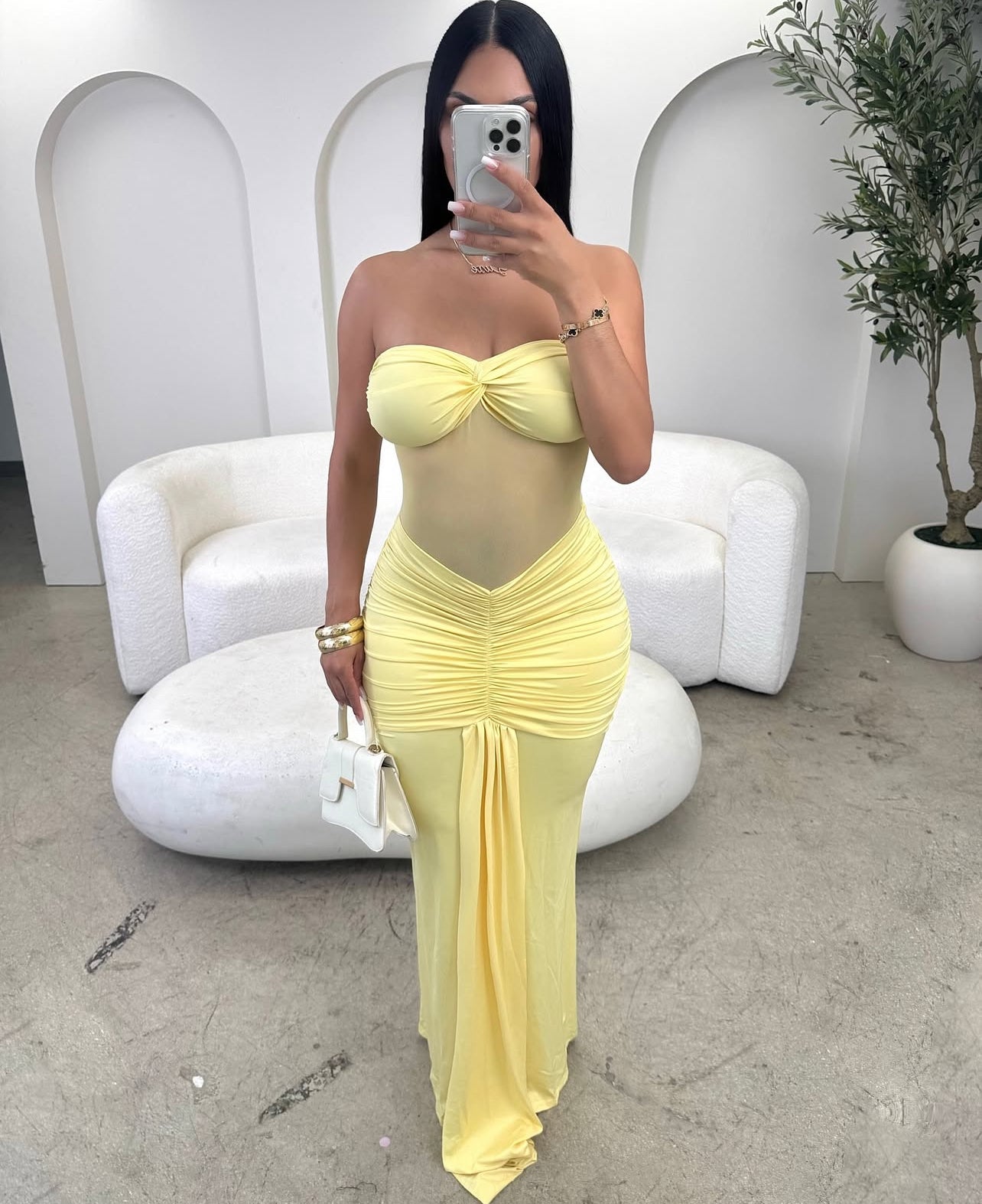 VL80058 Vestido longo com amarração versátil vestido justo sensual